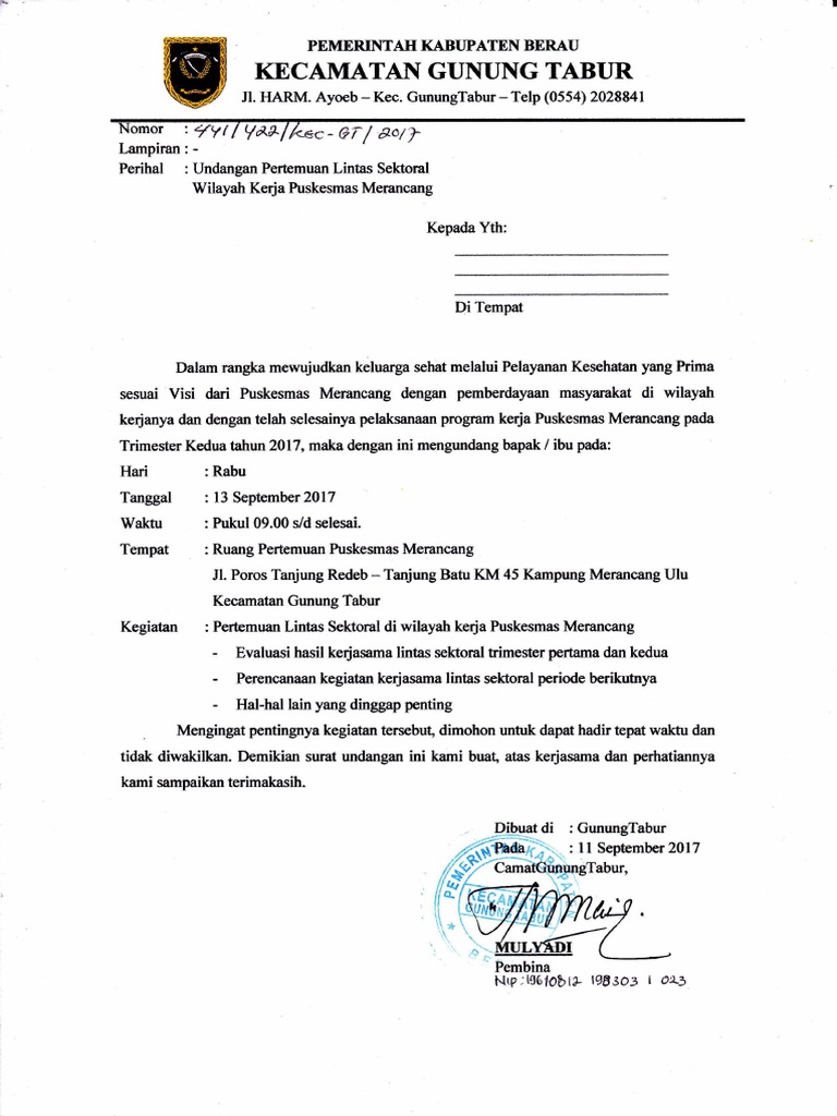 Begitu juga dengan surat undangan, terbagi menjadi surat undangan resmi dan tidak resmi. Surat undangan merupakan bagian terpenting dalam terlaksananya suatu kegiatan baik itu beberapa hal yang menjadi pusat perhatian dalam pembuatan surat undangan ialah kop surat. Surat undangan merupakan salah satu surat yang memuat ajakan kepada seseorang atau kelompok untuk menghadiri suatu acara. 5 surat undangan resmi karang taruna. Untuk menjaga kebenaran dan keabsahan surat resmi tersebut.